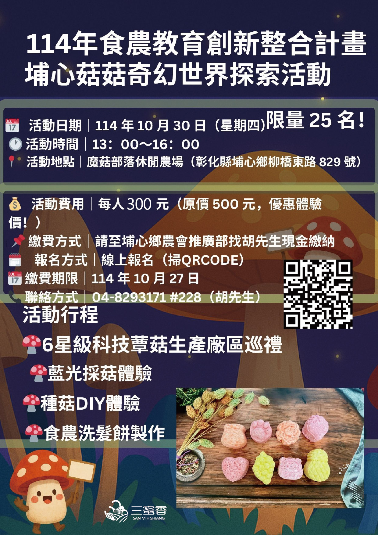 活動地點:魔菇部落休閒農場(彰化縣埔心鄉柳橋東路829號)。